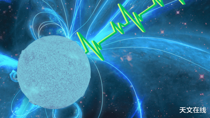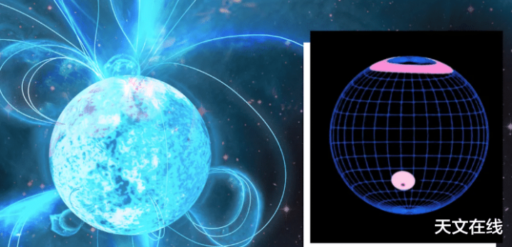 (图解:快速旋转的中子星(脉冲星)。图源:Robert Lea (created with Canva)/NASA)