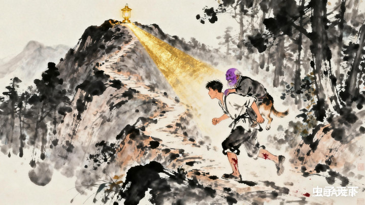 狗剩子背着老爹往山下跑,眼看老爹脸王人紫了,忽然看见山巅亮起一说念金光,照着一条从没见过的小径。